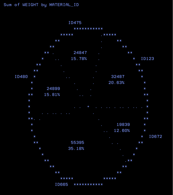 For now, we’ll just look at how the chart appears in the spool. In practice, pie charts usually look much better when you send them to other output formats, such as HTML, PDF, or other ODS devices.