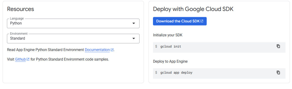 When creating GAE, we will be presented with the option to chose the language from dropdown and also to chose the environment (standard or flexible)